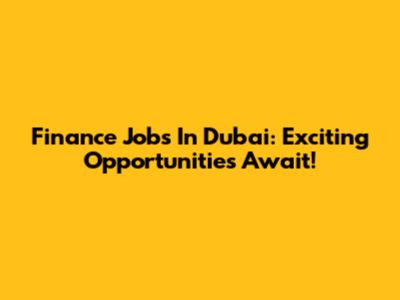 Finance Jobs In Dubai: Exciting Opportunities Await!