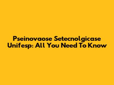 Pseinovaose Setecnolgicase Unifesp: All You Need To Know
