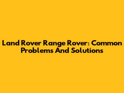 Land Rover Range Rover: Common Problems And Solutions