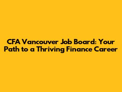 Hey finance enthusiasts! If you're looking to kickstart or elevate your career in the financial world, the CFA Society Vancouver Job Board is your ultimate resource. Forget endlessly scrolling through generic job sites. This is where opportunities in Vancouver's thriving finance scene come to life. Let's dive deep into how this board can be your secret weapon in landing that dream job, the ones that you always wanted.