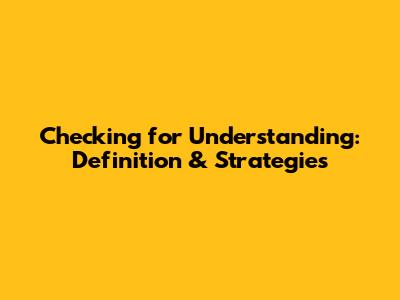 What is Checking for Understanding?