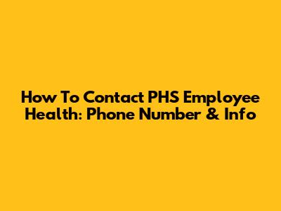 How To Contact PHS Employee Health: Phone Number & Info