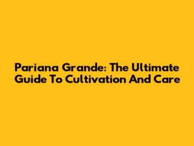Pariana Grande: The Ultimate Guide To Cultivation And Care