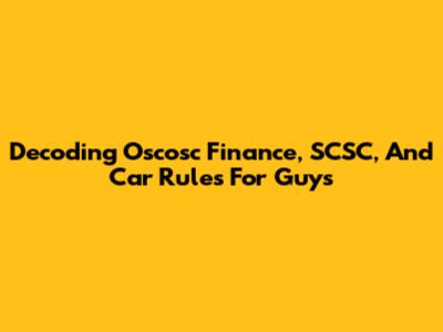 Decoding Oscosc Finance, SCSC, And Car Rules For Guys