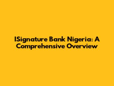 ISignature Bank Nigeria: A Comprehensive Overview