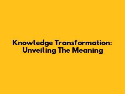 Knowledge Transformation: Unveiling The Meaning