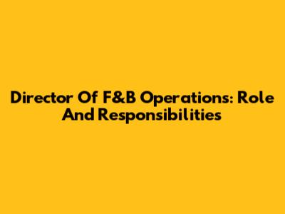 Director Of F&B Operations: Role And Responsibilities
