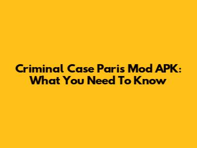 Criminal Case Paris Mod APK: What You Need To Know