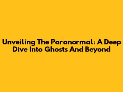 Unveiling The Paranormal: A Deep Dive Into Ghosts And Beyond