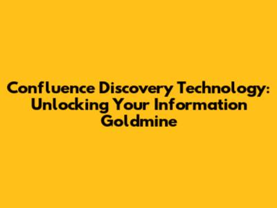 Hey guys, let's talk about something super important in today's data-driven world: Confluence Discovery Technology. Ever feel like you're drowning in information but can't find what you actually need? That's where this tech comes in, acting like your personal data detective. We're diving deep into how Confluence Discovery Technology works, why it's a game-changer for businesses, and how you can leverage it to become an information ninja. So buckle up, because we're about to uncover the secrets to making your data work for you, not against you!