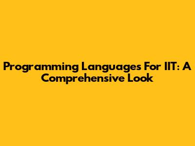 Programming Languages For IIT: A Comprehensive Look