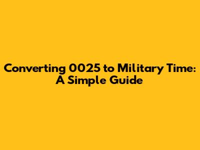 Understanding military time can seem daunting at first, but don't worry, guys, it's actually quite straightforward once you grasp the basic concept. Military time, also known as a 24-hour clock, eliminates the need for AM and PM designations, providing a clear and unambiguous way to represent time. This is particularly useful in fields like the military, aviation, emergency services, and even healthcare, where precision and clarity are crucial. In this article, we'll break down how to convert the time 0025 into military time, ensuring you're never confused by it again. Military time is a method of timekeeping that uses a 24-hour cycle, running from 0000 to 2359. The main advantage of using military time is to avoid any confusion between AM and PM. For example, 3:00 PM can be easily mistaken for 3:00 AM if not clearly specified. In military time, 3:00 PM is represented as 1500, eliminating any ambiguity. This is crucial in situations where miscommunication can lead to serious consequences. So, whether you're dealing with scheduling in a professional setting or just trying to understand a time given in military format, knowing how to convert to and from this system can be extremely valuable. Furthermore, understanding military time can also be useful in various aspects of daily life. For instance, when coordinating international calls or meetings, military time provides a universal standard that reduces the chances of scheduling conflicts due to time zone differences. It's also commonly used in transportation schedules, such as airline and train timetables, ensuring that passengers and crew members are on the same page. By adopting military time, organizations and individuals can streamline their communication processes and minimize the risk of errors. The simplicity and precision of the 24-hour clock make it an indispensable tool in various professional and practical contexts.