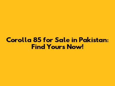 Hey guys! Are you on the hunt for a classic ride that’s both reliable and easy on the pocket? Look no further than the Corolla 85 for sale in Pakistan! This vintage beauty has a special place in the hearts of many Pakistani drivers, and for good reason. Let's dive into why the Corolla 85 remains a popular choice and how you can snag one for yourself.
