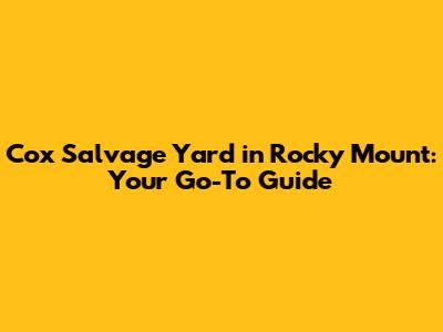 Hey guys! Are you in Rocky Mount and on the hunt for some affordable auto parts? Or maybe you've got a clunker taking up space and you're looking to make some cash? Well, look no further than Cox Salvage Yard! This place is a Rocky Mount institution, a treasure trove for car enthusiasts, DIY mechanics, and anyone looking to save a buck on their vehicle repairs. This guide will walk you through everything you need to know about Cox Salvage Yard, from what they offer to how to navigate the yard like a pro. We'll dive into the details, helping you find exactly what you need and get the best deal possible. So, buckle up, and let's explore the world of Cox Salvage Yard!