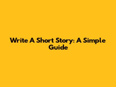Write A Short Story: A Simple Guide