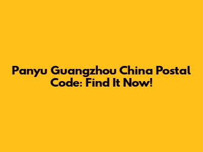 Panyu Guangzhou China Postal Code: Find It Now!