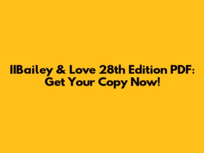 IIBailey & Love 28th Edition PDF: Get Your Copy Now!