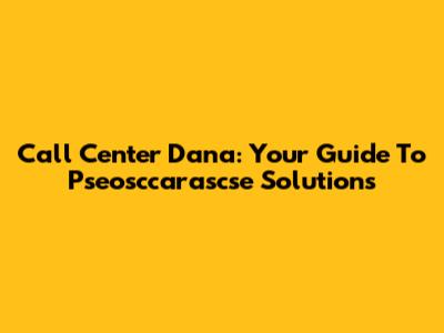 Call Center Dana: Your Guide To Pseosccarascse Solutions