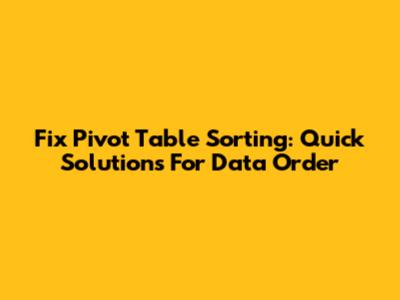 Fix Pivot Table Sorting: Quick Solutions For Data Order