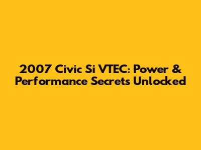 2007 Civic Si VTEC: Power & Performance Secrets Unlocked