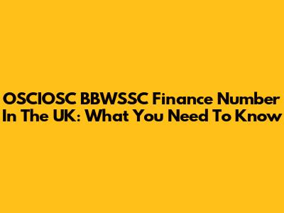OSCIOSC BBWSSC Finance Number In The UK: What You Need To Know