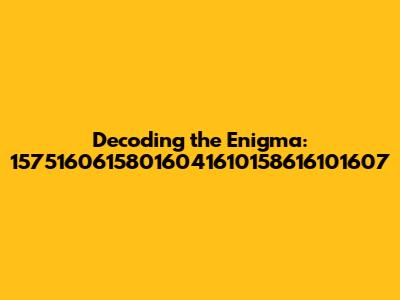 Is it possible that 15751606158016041610158616101607 is part of a secret code? Maybe it's encrypted data or a sequence of instructions for a specific program. If it's a code, cracking it could be a real challenge. You'd need to know the encryption method or the programming language used. This might involve some serious detective work and possibly even some specialized tools.