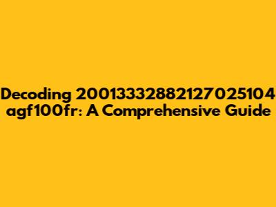 Alright, tech enthusiasts and curious minds! Let's dive deep into the enigmatic world of "20013332882127025104 agf100fr." This string might look like a random jumble of characters and numbers, but trust me, there's likely more than meets the eye. In this guide, we're going to dissect this identifier, explore potential meanings, and equip you with the knowledge to understand similar codes you might encounter in the wild. So, buckle up, and let's get started!