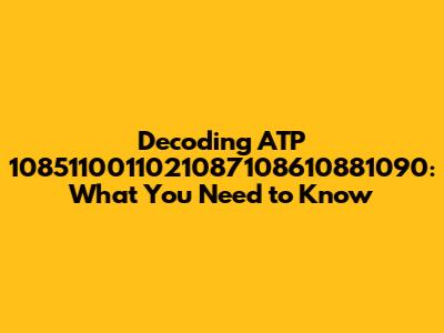 Hey guys, let's dive into something that might seem a bit technical at first glance: ATP 1085110011021087108610881090. Now, I know what you're thinking – those numbers and letters look like a secret code! But trust me, understanding what this refers to can be super important, especially if you're dealing with certain types of equipment or systems. We're going to break down ATP 1085110011021087108610881090 in a way that's easy to digest, so stick around. We'll explore its potential meaning, why it matters, and what you should do if you encounter it. Think of this as your friendly guide to demystifying this somewhat obscure reference. We'll cover everything from potential contexts where you might see this code to the practical implications it has for users and professionals alike. So, grab a coffee, get comfy, and let's get started on unraveling the mystery behind ATP 1085110011021087108610881090.