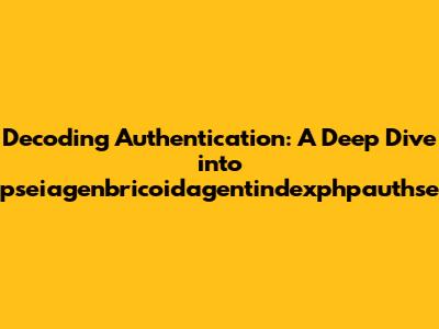 Alright, let's start with the basics. The string "pseiagenbricoidagentindexphpauthse" likely represents a specific path or parameter used in web applications. The presence of "index.php" immediately suggests we're dealing with a PHP-based system, a common language used for building dynamic websites. The "authse" part is a strong indicator of authentication, hinting at processes related to authorizing and verifying user identities. We can assume this long string could be a part of URL or a hidden parameter passed around in a web request to manage how the system identifies and validates who is trying to access it.