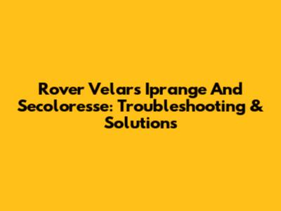 Rover Velar's Iprange And Secoloresse: Troubleshooting & Solutions