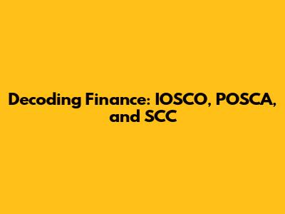 Navigating the complex world of finance can often feel like deciphering a secret code. With a plethora of acronyms and regulatory bodies, understanding the key players and their roles is crucial for anyone involved in the financial sector. In this article, we'll break down three important terms: IOSCO, POSCA, and SCC, explaining what they are and why they matter.