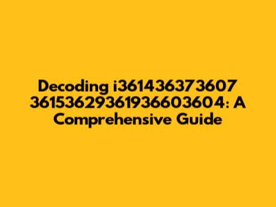 Let's dive into the mysterious world of i361436373607 36153629361936603604. What could this possibly be? Well, sometimes, seemingly random strings of characters and numbers pop up, and figuring out what they mean can be quite the adventure. This guide aims to break down the possibilities and provide some clarity. So, buckle up, guys, as we embark on this decoding journey! When faced with such alphanumeric strings, there are several potential origins and interpretations, and we'll explore these to give you a comprehensive understanding.