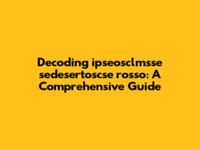 Let's dive deep into the enigmatic world of "ipseosclmsse sedesertoscse rosso." This term might seem like a jumble of letters at first glance, but unpacking it reveals fascinating insights, possibly related to specific technologies, artistic movements, or even coded messages. In this comprehensive guide, we'll explore potential interpretations, dissect the components, and provide a framework for understanding its possible meanings. Guys, understanding these cryptic terms is essential in various fields, from cybersecurity to art history. The world is full of such encoded messages, and deciphering them is like unlocking hidden knowledge. It could represent a software version, a classification within a complex system, or even a unique identifier for a specific project. Think of it as a secret handshake for those in the know! Decoding this could also unlock a new way of understanding how systems are named and classified, offering us a glimpse into the minds of the creators. The term could potentially be connected to fields like computer science, cryptography, or even esoteric studies. It's not uncommon to find complex terms like this in highly specialized domains, where precision and uniqueness are paramount. It could even be a product name, an internal project code, or a specific setting within a larger system. Ultimately, unraveling the meaning of "ipseosclmsse sedesertoscse rosso" requires a multi-faceted approach, combining contextual analysis, linguistic breakdown, and potentially, a bit of creative intuition.