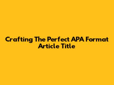 Crafting The Perfect APA Format Article Title