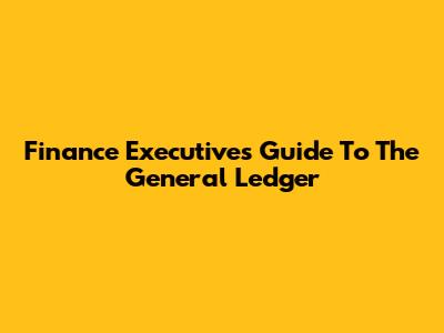 Finance Executive's Guide To The General Ledger