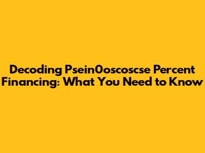 Let's dive into the world of psein0oscoscse percent financing! It sounds complicated, but we're going to break it down in a way that's easy to understand. So, what exactly does "psein0oscoscse percent financing" even mean? Well, it appears to be a placeholder or a specific term that needs further clarification. Since it's not a standard financial term, we'll approach it from the perspective of understanding financing options in general and how to evaluate them. Understanding financing, whether it's for a car, a house, or a business venture, involves several key components: the interest rate, the term length, the principal amount, and any associated fees. Each of these factors plays a crucial role in determining the overall cost of the financing and its suitability for your specific needs. Interest rates, for instance, can be fixed or variable, impacting the predictability of your payments. A fixed interest rate remains constant throughout the loan term, providing stability, while a variable interest rate can fluctuate based on market conditions, potentially leading to higher or lower payments over time. The term length refers to the duration of the loan, influencing the size of your monthly payments and the total interest paid. A shorter term generally results in higher monthly payments but lower overall interest costs, while a longer term offers lower monthly payments but higher total interest costs. Principal amount is the initial sum of money borrowed, and it's the foundation upon which interest is calculated. Finally, various fees, such as origination fees, application fees, or prepayment penalties, can add to the overall cost of financing and should be carefully considered. When evaluating any financing offer, it's essential to look beyond the advertised interest rate and consider all the associated costs and terms. This comprehensive approach will help you make an informed decision and choose the financing option that best aligns with your financial goals and circumstances. Remember to compare offers from multiple lenders and negotiate terms whenever possible to secure the most favorable deal. Understanding these basic principles will empower you to navigate the complex world of financing with confidence, even when encountering unfamiliar terms like "psein0oscoscse percent financing."