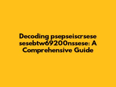 psepseiscrsese: This segment looks like a series of prefixes and suffixes combined. The repetition of "pse" and "se" might indicate a specific coding or naming convention. It's possible this is an identifier, a codename, or even a placeholder.sesebtw: This portion contains a mix of letters, and the inclusion of "btw" might indicate an abbreviation for "by the way" or something similar, depending on the context.69200: This is a numerical component. Numbers in such strings often represent dates, versions, identifiers, or quantities. In this case, 69200 could be a specific product number, a serial number, or even a geographical coordinate if we stretch our imagination.nssese: Similar to the first segment, this again looks like a coded or abbreviated sequence. The repetition of "se" and the inclusion of "nss" could signify another set of identifiers or categories.-