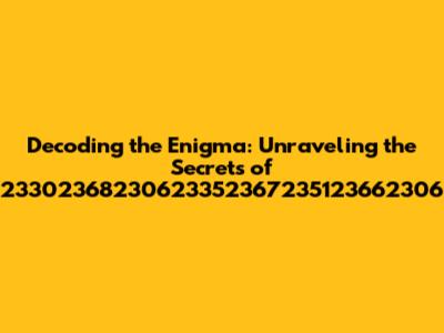 So, what exactly is 23302368230623352367235123662306? At first glance, it looks like a sequence of numbers, but what does it represent? It could be anything, seriously! It could be a unique identifier, a code for a specific item, or even a GPS coordinate. The possibilities are endless. Maybe, just maybe, it's a date or a time stamp. Or, even more excitingly, it could be a clue to a hidden message or an encrypted file. Now you get why this is interesting, right? It's like finding a treasure map, and we're the ones who get to dig for the gold. But how do we find out what it means? Let’s try some methods of decryption to determine what is hidden behind this code.
