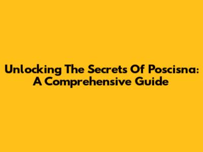 Unlocking The Secrets Of Poscisna: A Comprehensive Guide