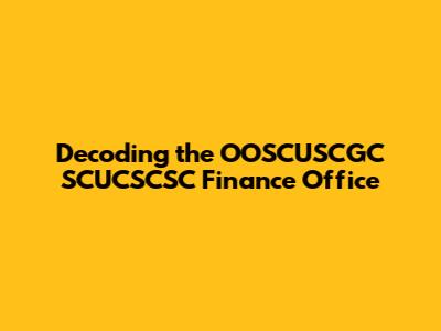 Hey guys! Ever stumbled upon the OOSCUSCGC SCUCSCSC Finance Office and wondered, "What in the world is that?" Well, you're not alone! This article is your friendly guide to demystifying this intriguing entity. We'll dive deep into what it is, what it does, and why it matters. Get ready to have your curiosity piqued and your understanding expanded. We're going to break down the OOSCUSCGC SCUCSCSC Finance Office into bite-sized pieces so that everyone can understand, from finance gurus to those just starting their financial literacy journey. Ready to decode? Let's jump in!