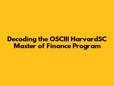 What is the OSCIII HarvardSC Master of Finance Program?