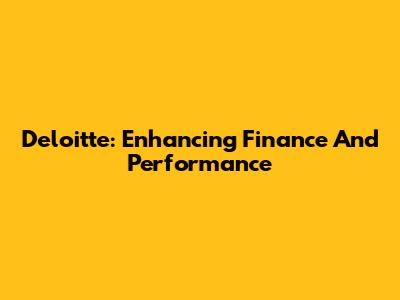 Deloitte: Enhancing Finance And Performance