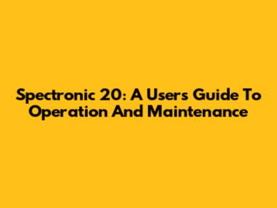 Spectronic 20: A User's Guide To Operation And Maintenance