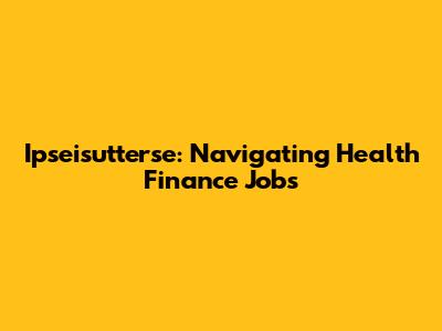 Ipseisutterse: Navigating Health Finance Jobs