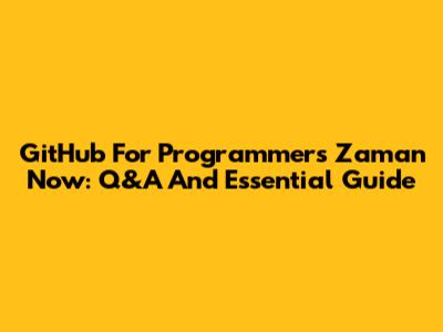 GitHub For Programmers Zaman Now: Q&A And Essential Guide