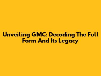 Unveiling GMC: Decoding The Full Form And Its Legacy