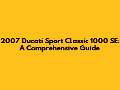 2007 Ducati Sport Classic 1000 SE: A Comprehensive Guide