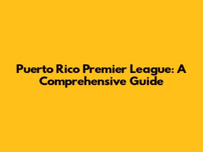Puerto Rico Premier League: A Comprehensive Guide