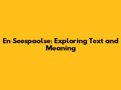 To further illustrate the importance of context, let's consider a few hypothetical scenarios where "en seespaolse" might appear: