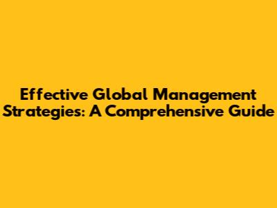 Effective Global Management Strategies: A Comprehensive Guide